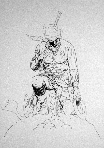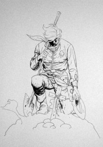 When Jimmy and Justin tapped me for this one, I got somewhat excited about the possibilities artistically. Working with a full script from those two frees me up to stretch some artistic muscles I mightn’t otherwise. My previous outing on Hex was quite rewarding, but very much within the type of work I’m generally known for; brushwork with an economy of line and dense blacks. I really wanted to switch it up for this one, and see if I could come up with something that looked somewhat more fitting technique-wise.