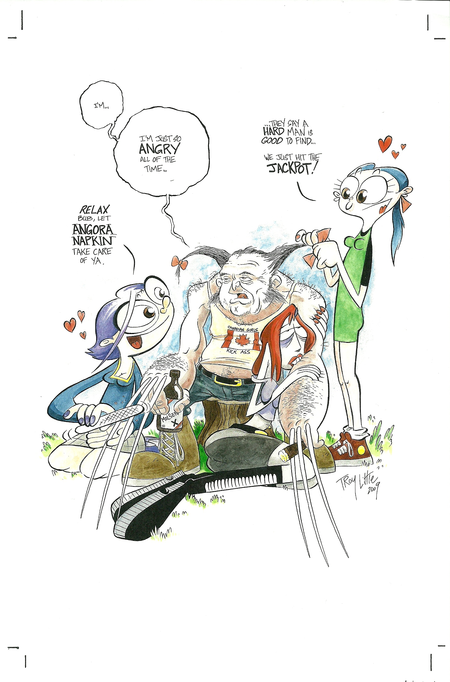 He graduated from the Sheridan College Interpretive Illustration program in 1994 then returned home to P.E.I. to work crappy jobs and live with his folks. A dark time indeed, but he did meet his future wife Carol then, so it’s not all bad.