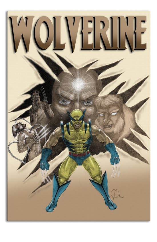 The piece shown above (accompanied by a digitally coloured print – see right) is one of the over 40 pieces featuring Wolverine donated to the Joe Shuster Awards for the Visions of an Icon Art Show and Sale by Canadian artists. The pieces were exhibited twice in 2009 – at the Joe Shuster Awards Ceremony in September and at the Speakeasy Comic Art Show in November. The original art pieces will be auctioned off on eBay in March 2010. Watch for announcements on this site!