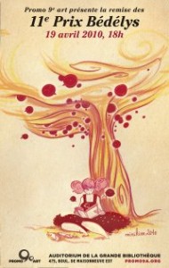 Last evening at a special ceremony held at the auditorium of la Grande Bibliothèque (475 boul. De Maisonneuve Est) in Montreal, Promo 9e art presented the 11th annual prix Bédélys, which honour the best in French language graphic novels/comics (bandes dessinées) published in 2009. Four juries composed of amateurs and professionals selected the books which they felt were the most significant works published in the categories of Best Book from Quebec, Best Book, Best Self-Published Book and Best Book for Younger Readers. The Prix Bédélys Québec is accompanied by a bursary of $1000, and the Prix Bédélys Fanzine comes with a bursary of $250.