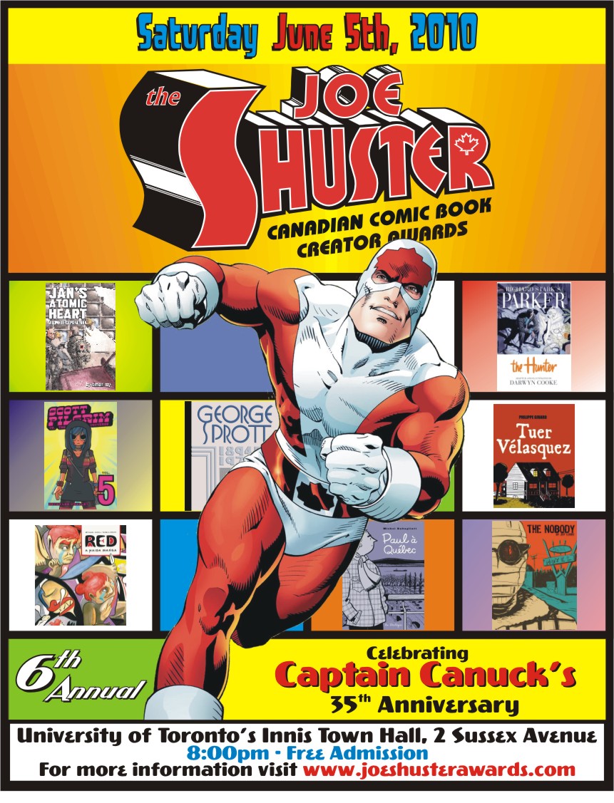 […] Joe Shuster Awards are on at U of T, Innis Hall. All the relevant info for that event are on the Joe Shuster Awards site. Check out the list of nominations as well (the Guy is up for […]