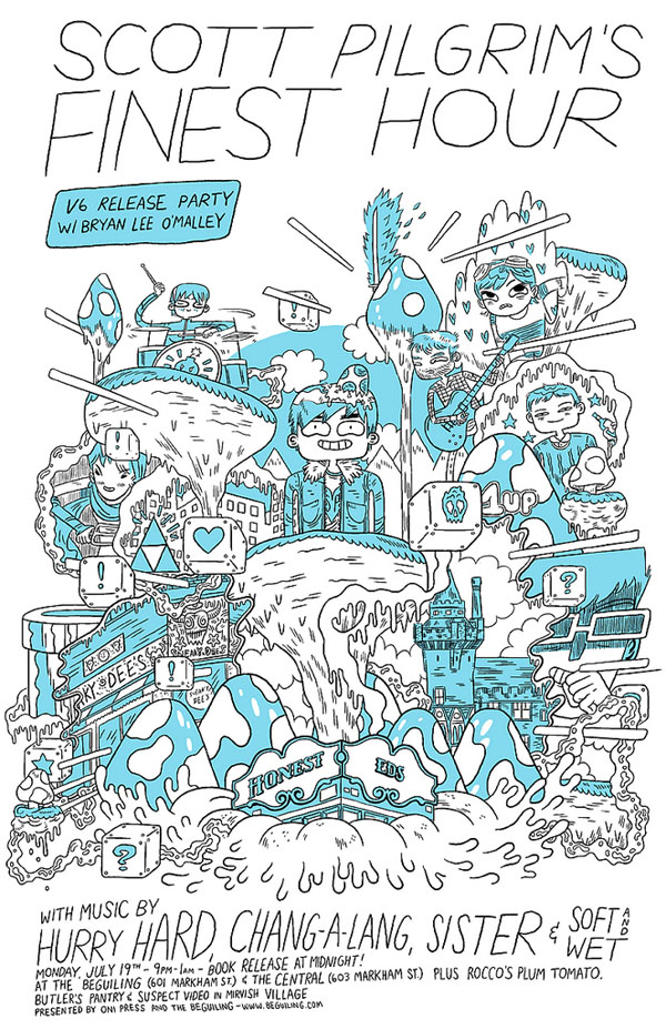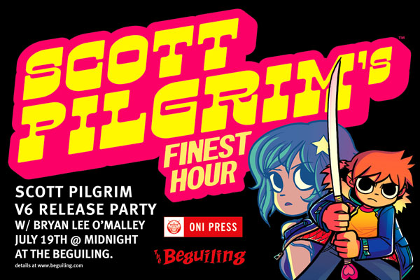 TORONTO, CANADA: The highly-anticipated FINAL VOLUME of the Epic Scott Pilgrim graphic novel series from Oni Press will be released on Tuesday July 20th… but internationally renown comic book store The Beguiling knows that real fans Just Can’t Wait That Long! To celebrate the release of this phenomenal graphic novel, they’re going to be throwing A GREAT BIG PARTY ON MONDAY JULY 19TH STARTING AT 9PM, which will culminate in the official release of SCOTT PILGRIM VOLUME 6: SCOTT PILGRIM’S FINEST HOUR at 12:01am–midnight!