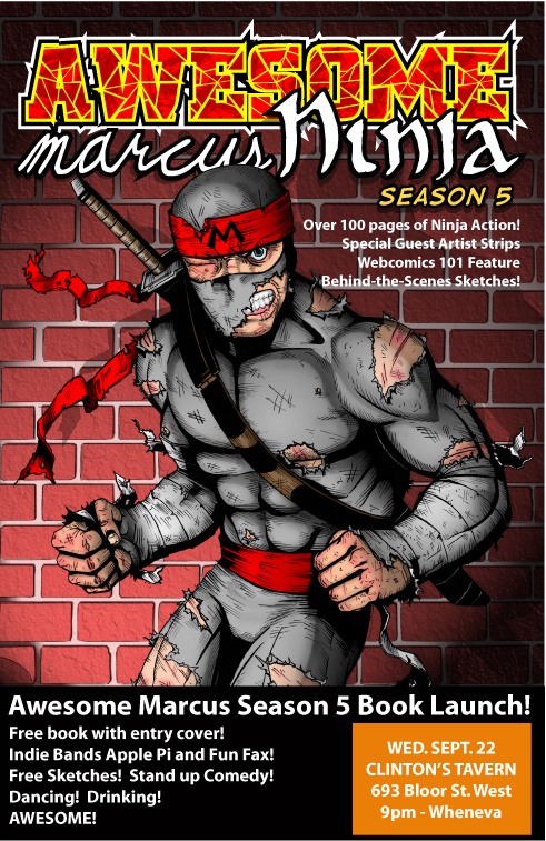 Happenings: Awesome Marcus Ninja Season 5 release party tonight in Toronto – Sept. 22nd That’s right, Awesome Marcus Ninja Season 5 is coming out on SEPTEMBER 22, 2010! If you live in Toronto come by Clinton’s Tavern to celebrate and pick up a copy! Rate this:Share this post: Click to share on X (Opens in new window) X Click to share on Facebook (Opens in new window) Facebook Like Loading... Related