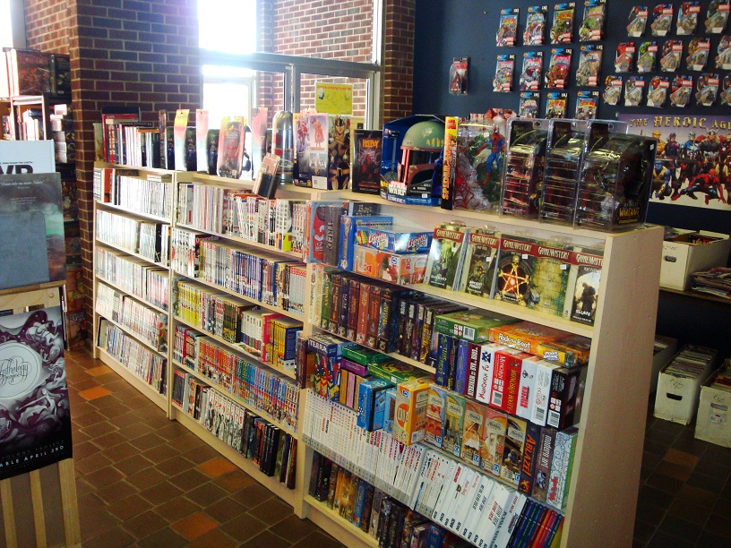 A handful of amateur comics are produced locally, all sold at our store. The local libraries hold book clubs, one hosted by my wife who is a librarian. We also host our own book club once a month. Animaritime hits town once a year, although we haven’t participated in the past, having only recently starting to carry manga. Hal-Con is next month and we’re taking part by hosting a table and running gaming events. One of our employees is looking to start a comic-jam in the near future. We also donate to the library occasionally. Have given comic books to teachers and offered deep discounts to anyone from the library/schools. Sponsored a few local events, both comic and non-comic related.