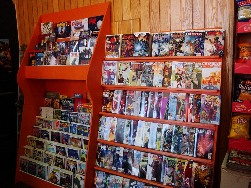 new comics, back issues, graphic novels/tpbs, used TPBs, toys, tshirts, board games, CCG, RPGs, Manga, Starfleet Battles