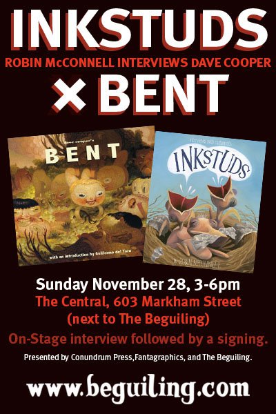 Plus, Robin’s going to be in Toronto this Sunday, November 28th where he’ll be doing an on-stage interview with Cartoonist Dave Cooper at the Central – 603 Markham Street (right next to the Beguiling). The event is presented by Conundrum Press, Fantagraphics and the Beguiling.