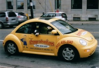 It’s seems the Strangemobile went kaput earlier this month, the engine blew up. Calum tells us times are tough, he was ripped off for 3k by a contractor in 2010, and that he’s cutting costs rather than laying off staff. Pure speculation, but with the economy in Canada still not up and running (recent reports say that bounceback-wise we are in 6th place of the G7), a third store expansion to Dartmouth last year has resulted in a rise of fix costs such as rent, heat and hydro and staffing costs (salary, WSIB, CPP, EI & tax) have had an impact on the business. The good news is: the Bug is back.