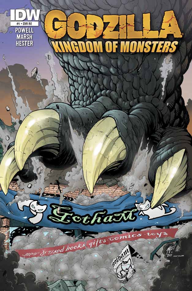 To recap: a retailer must order 500 copies of Godzilla #1. If they do, they get an exclusive cover: Godzilla crushing their shop. (And the bonus of getting covered here! And a comic that they can use as advertising for years, or until they’ve given them all away at, perhaps at the upcoming Free Comic Book Day.)