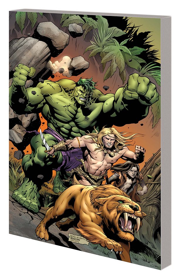 The Hulk has never been welcome in the civilized world. What better place for the savage Hulks than the Savage Land? Get ready for jungle action as Hulk and Skaar invade the prehistoric paradise of Ka-Zar, Lord of the Hidden Jungle. Featuring the showstopping pencils of superstar Dale Eaglesham and the return of a deadly frenemy the Hulk should never have forgotten. In the slaughterhouse of Planet Sakaar’s gladiatorial arenas, the Hulk and his Warbound companions swore to stand forever at each other’s sides. Now, alongside Ka-Zar and Skaar, that oath faces its final test. Will their great bond end in rout or redemption? Collecting INCREDIBLE HULKS #623-629.