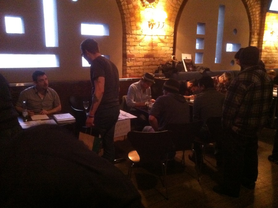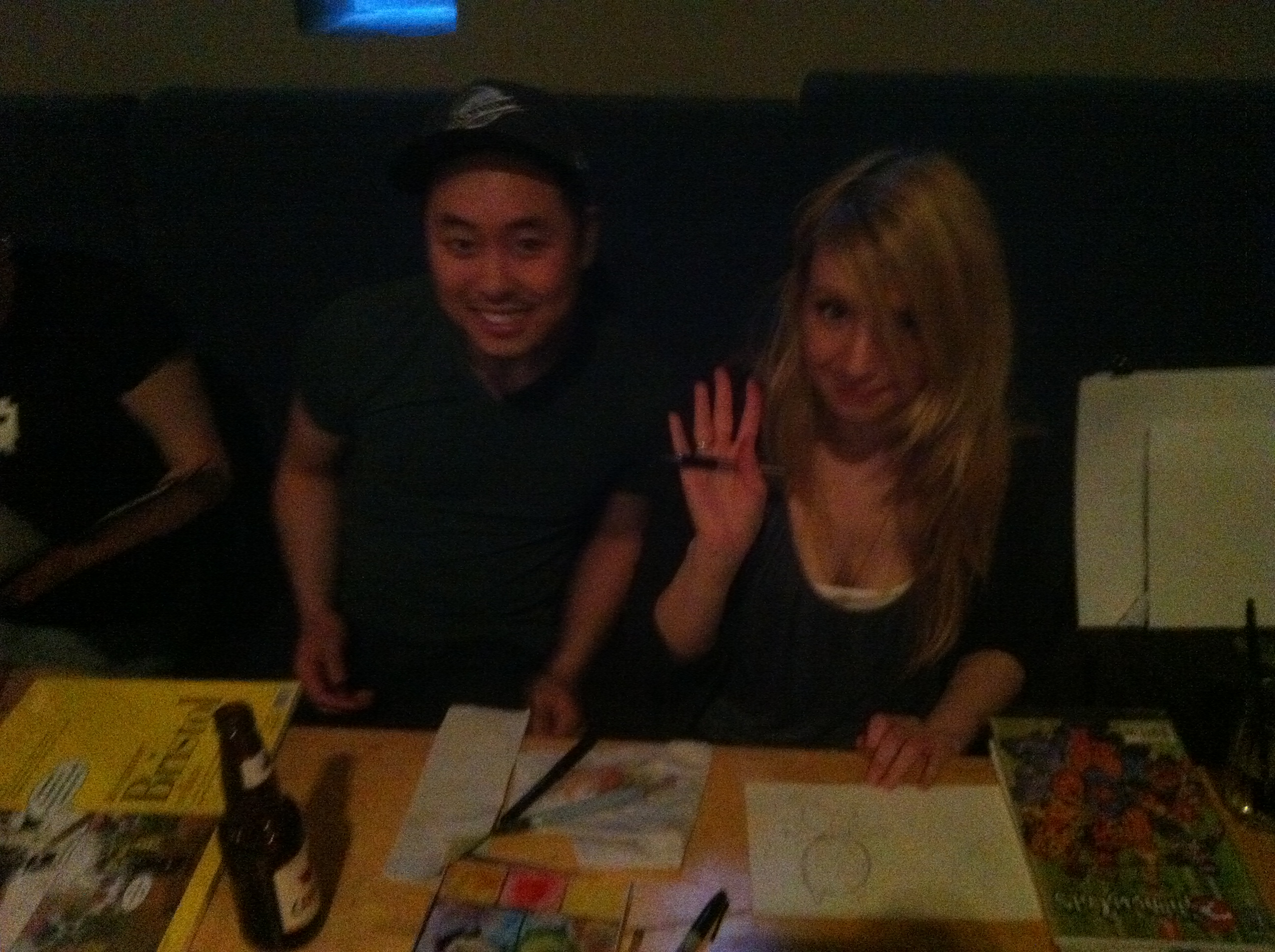 Yesterday at the Revival Bar in Toronto, ON – a group of concerned individuals within the city’s comic book, animation and illustration communities organized the Artists Help Japan fundraiser at which a number of creators gathered to produce sketches and run an original art auction to benefit the victims of the devastating earthquakes and tsunamis which rocked Japan last month. All proceeds from the event went to the Canadian Red Cross.