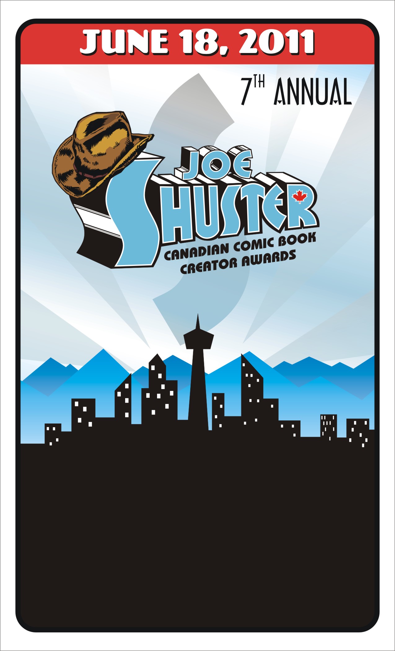 We don’t have a poster per se this year (thanks to those that offered!) because we really don’t have anywhere we need one for at this time. Instead, art director Tyrone Biljan took some design elements on hand and put together this simple and effective image that we are using now for this website and for the Facebook and other social media outlets and will encourage others to us to promote the ceremony and any post-ceremony reports. The background image in the sky is something Darwyn Cooke sent us for another upcoming project. The Awards logo itself is based on a design Dave Sim did for us that Tyrone adapted for the original logo, which is in itself a homage to Joe Shuster’s own stylistic form of lettering.