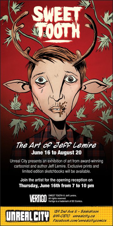 Unreal City hosted Jeff Lemire for an art gallery and signing event. If you use your eagle eyes, you’ll spot 2011 Gene Day Award nominee Elaine Will, creator of Look Straight Ahead, found in better comic shops..