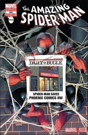 Retailers had to special order a stack of Spidey comics to get this special print run, and you’ll notice that none of the Godzilla shops are in on the Spidey promo. I’d be interested in hearing about the various ways retailers are using this issue as a promotion. Are you selling them strictly to your walk in traffic? What is the stale date for such a product? Will you be handing them out as marketing for your shop? Will you wait until the Spider Island TPB is available, then give away copies of the comics with a sticker/boomerang coupon for the complete story? Or did you just order it because you wanted to see your store on the cover of a Spider-Man comic?