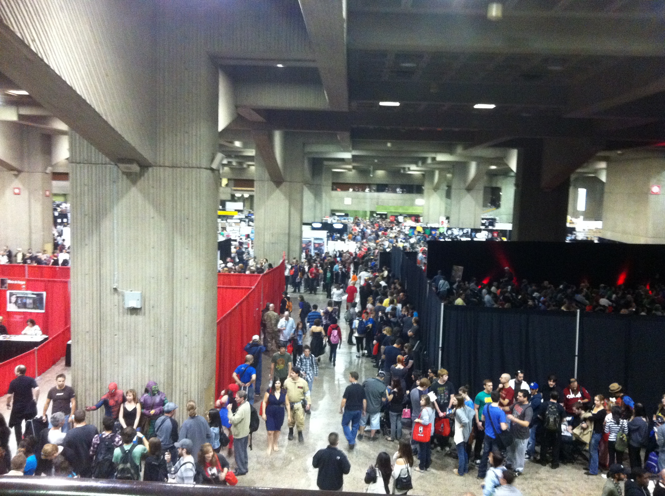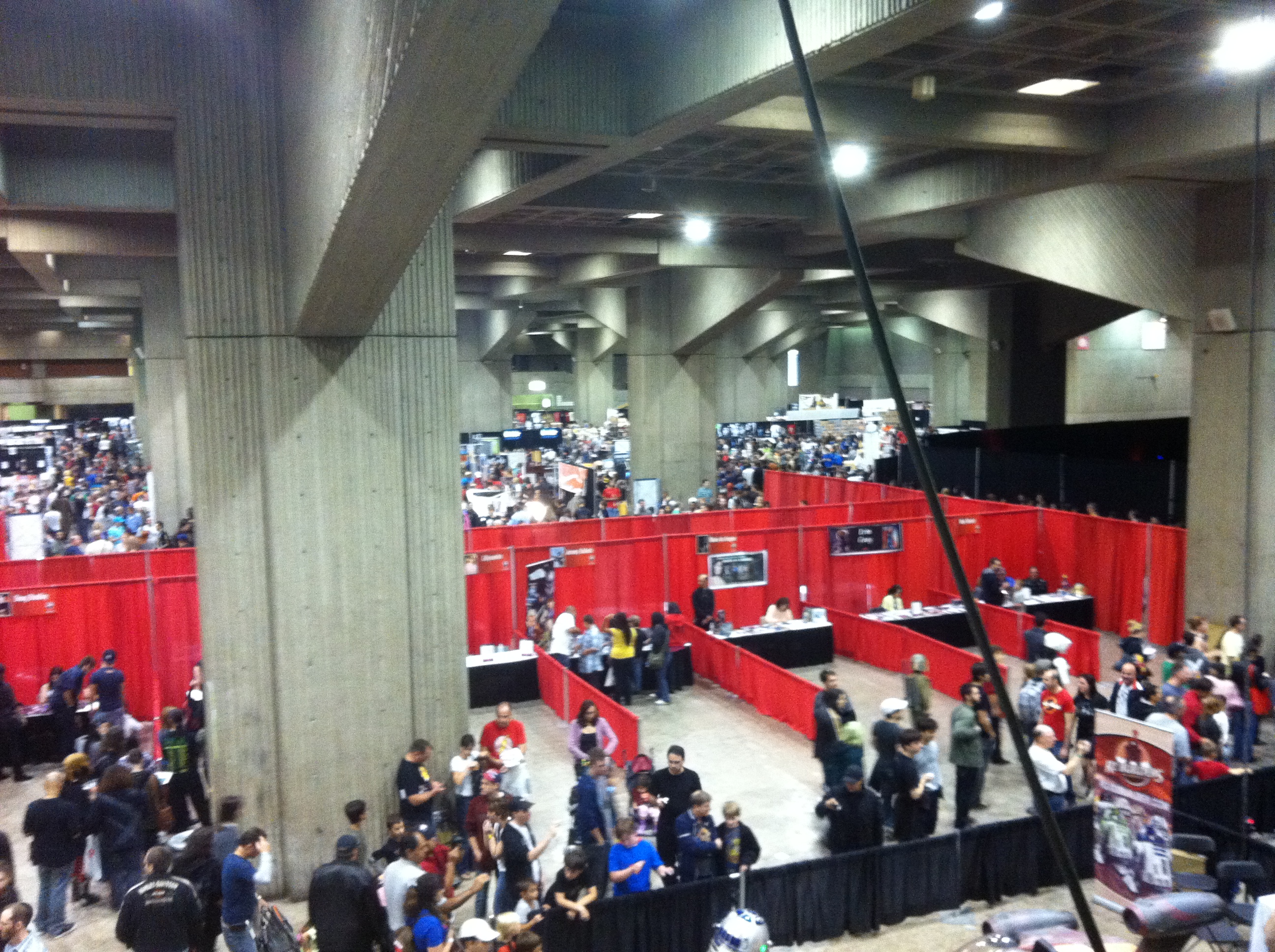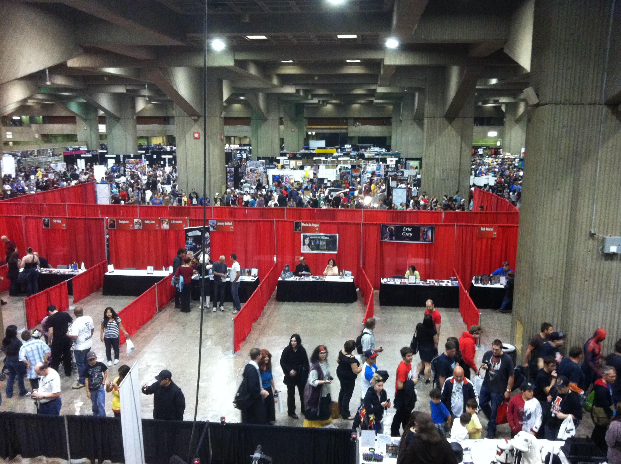 Here are some pictures I took of the convention floor from the balcony at the back of the hall to give you a sense of how hopping the event was around 1PM on Sunday.