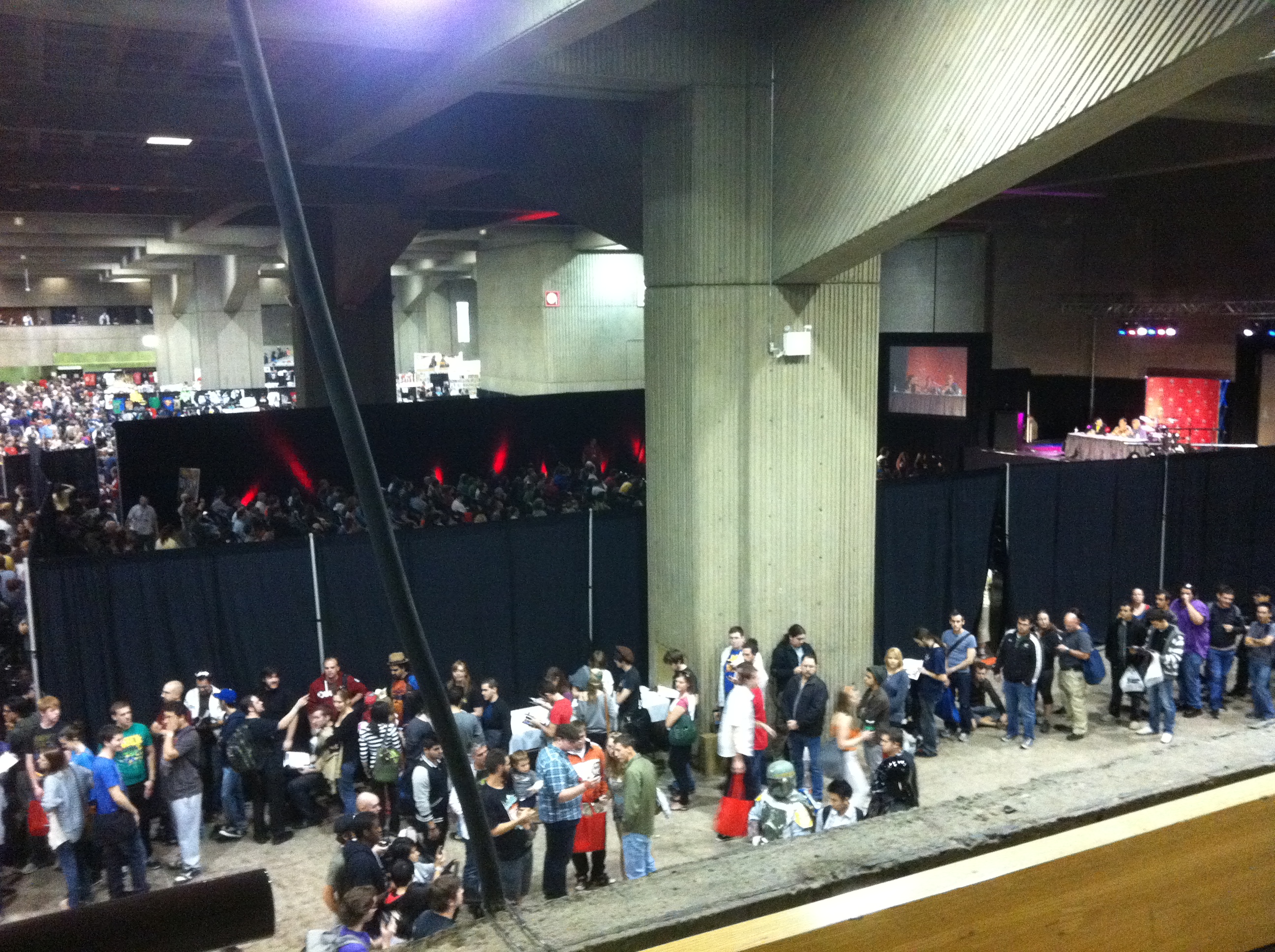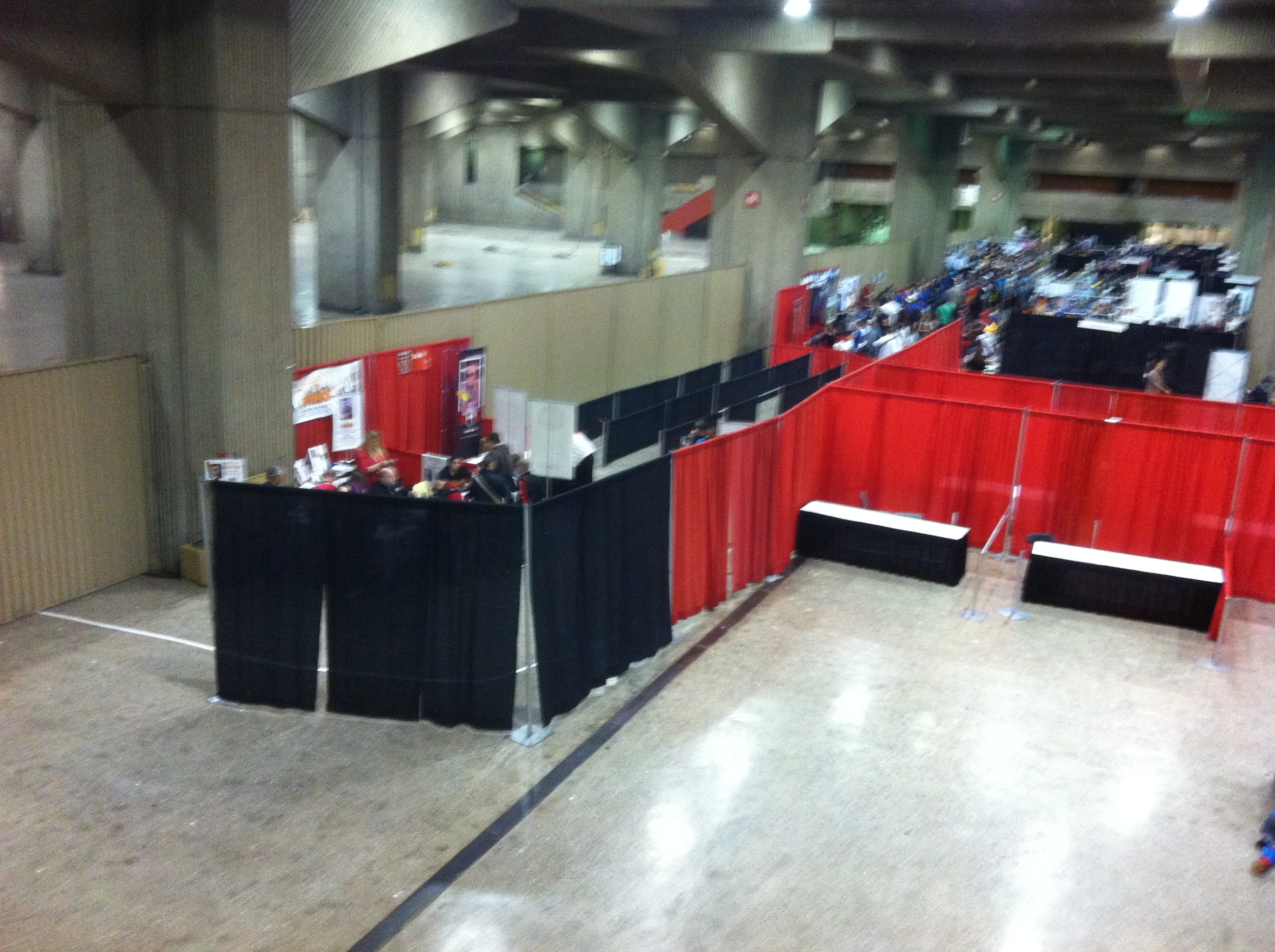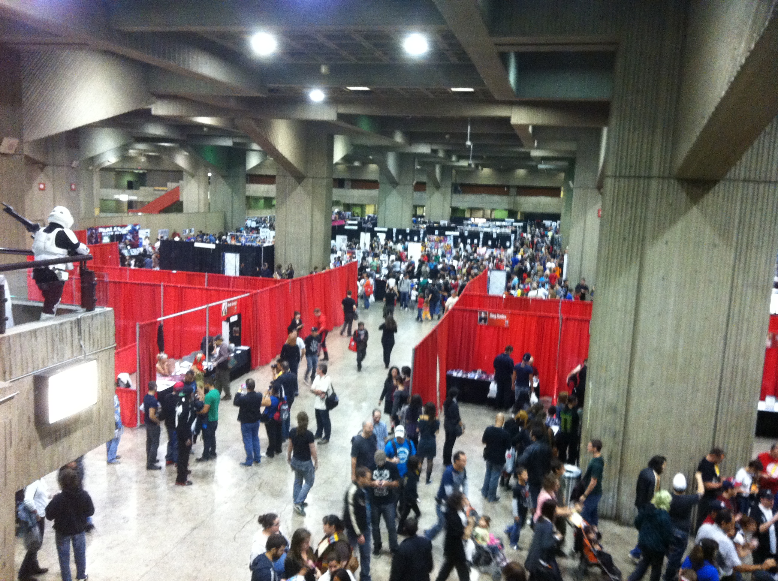 Here are some pictures I took of the convention floor from the balcony at the back of the hall to give you a sense of how hopping the event was around 1PM on Sunday.