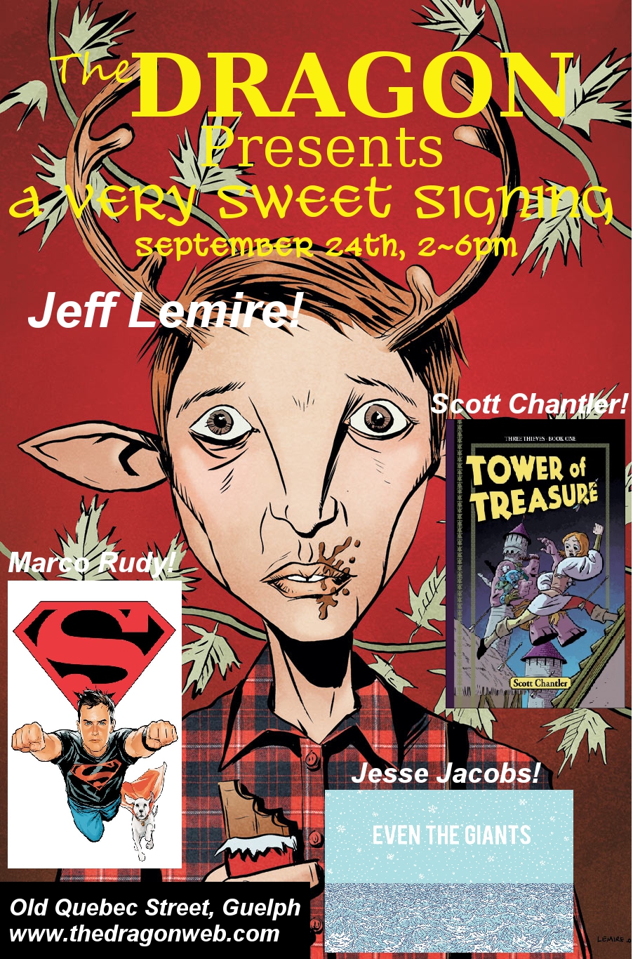 On September 24th we are hosting Jeff Lemire, Scott Chantler, Jesse Jacobs and Marco Rudy in store