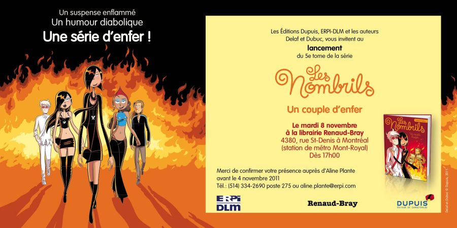Delaf and Dubuc are back! This November sees the release of the nextbook in the Les Nombrils series (translated as The Bellybuttons) and Editions Dupuis, Renaud-Bray, ERPI-DLM and the creative team – writer and Joe Shuster Award winner Maryse Dubuc and artist Marc Delafontaine are having a release party on Tuesday, November 8 at 5PM: