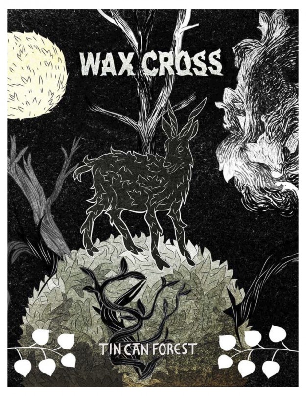 Tin Can Forest (aka Pat Shewchuk and Marek Colek) whose Koyama Press debut Baba Yaga and the Wolf was nominated for the 2011 Doug Wright Award for Best Emerging Talent, and won the duo the 2011 Joe Shuster Award for Outstanding Comic Book Cartoonist will release Wax Cross also in spring 2012. The artists describe the new work as “an alchemical folk-tale set in the twilight of the modern age, when the moon has devoured the sun, the mechanical ocean has evaporated into silence, and the decaying corpse of electric current sleeps eternally in a casket of orange lichen. Featuring a cast of characters as familiar as the faded Polaroids in a photo album salvaged from the flooded basement of a condemned church, Wax Cross presents illustrated transcriptions of ectoplasmic revelation, fibrous and grainy folklore, and unbridled bestial merriment, accompanied by textual incantations and occult decoration.”