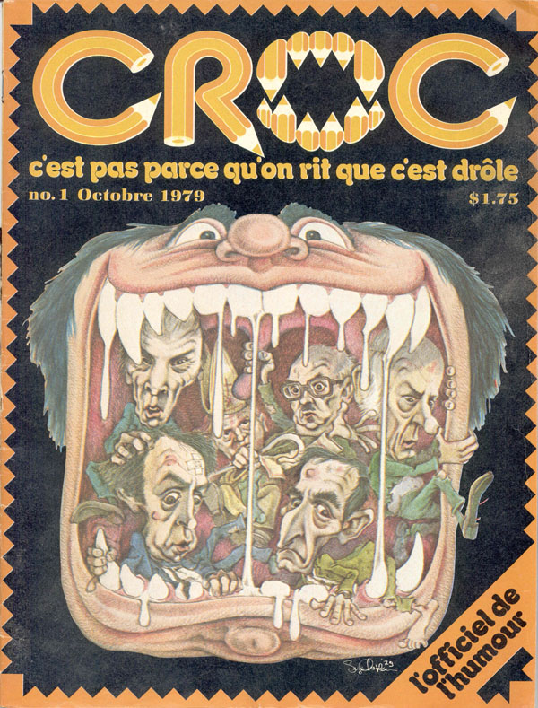 Jacques Hurtubise, who uses the pseudonym Zyx, founded the Coopérative des Petits Dessins in 1972 a group of young Canadian comic strip artists who offered daily strips to French Canadian dailies in the seventies. Le Jour, a political daily published his strip about the bad guy ‘Sombre Vilain until the paper folded in 1976. This series was later continued in the popular satirical monthly magazine Croc (1979-1995), which Hurtubise founded with Hélène Fleury and Roch Côté in 1979. Several other «Bandes Dessinées» magazines and albums were published during the eighties by Hurtubise ( Titanic, Anormal, Mad Quebec, Red Ketchup) but they never reached the popularity of Croc.